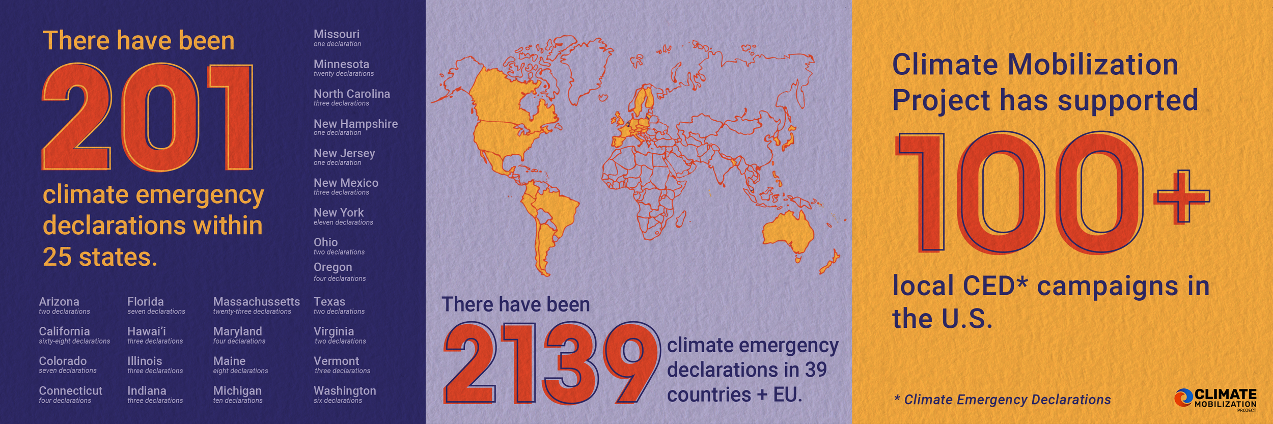 Our programs have trained 850+ individuals in community organizing and led to the passage of more than 200 climate emergency emergency declarations in the US.